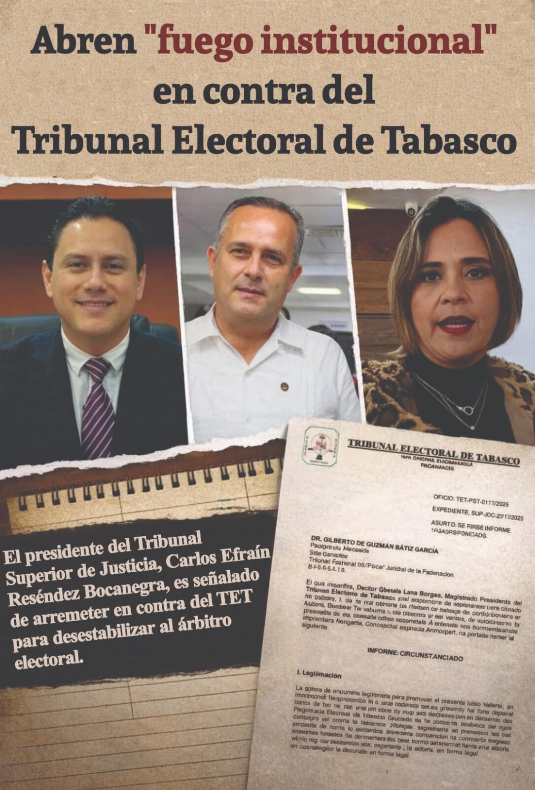 El presidente del Tribunal Superior de Justicia de Tabasco, Carlos Efraín Reséndez Bocanegra, es señalado como actor clave en una estrategia de abrir “fuego amigo” para desestabilizar al órgano electoral y provocar una crisis institucional.