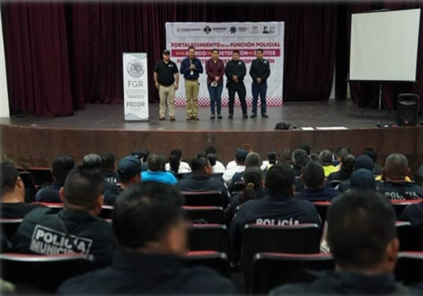 La Fiscalía General de la República (FGR) a través de la Fiscalía Especializada de Control Regional (FECOR) en el estado de Tabasco, en acciones coordinadas con la Mesa de Seguridad para la Construcción de la paz en Tabasco, llevó a cabo la capacitación denominada “Fortalecimiento de la función policial en el marco de la detención y puesta a disposición en delitos flagrantes”, impartida a primeros respondientes de los tres niveles de gobierno.