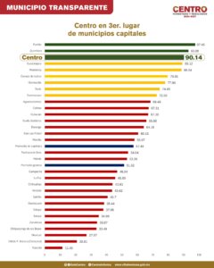 Villahermosa, Tab., 27 de noviembre de 2025.- El municipio de Centro obtuvo su puntaje más alto en el Índice de Transparencia y Disponibilidad de la Información Fiscal de los Municipios (ITDIF-M), elaborado por aregional, alcanzando por primera vez la categoría de Municipio Transparente, distinción reservada únicamente para quienes superan los 90 puntos.