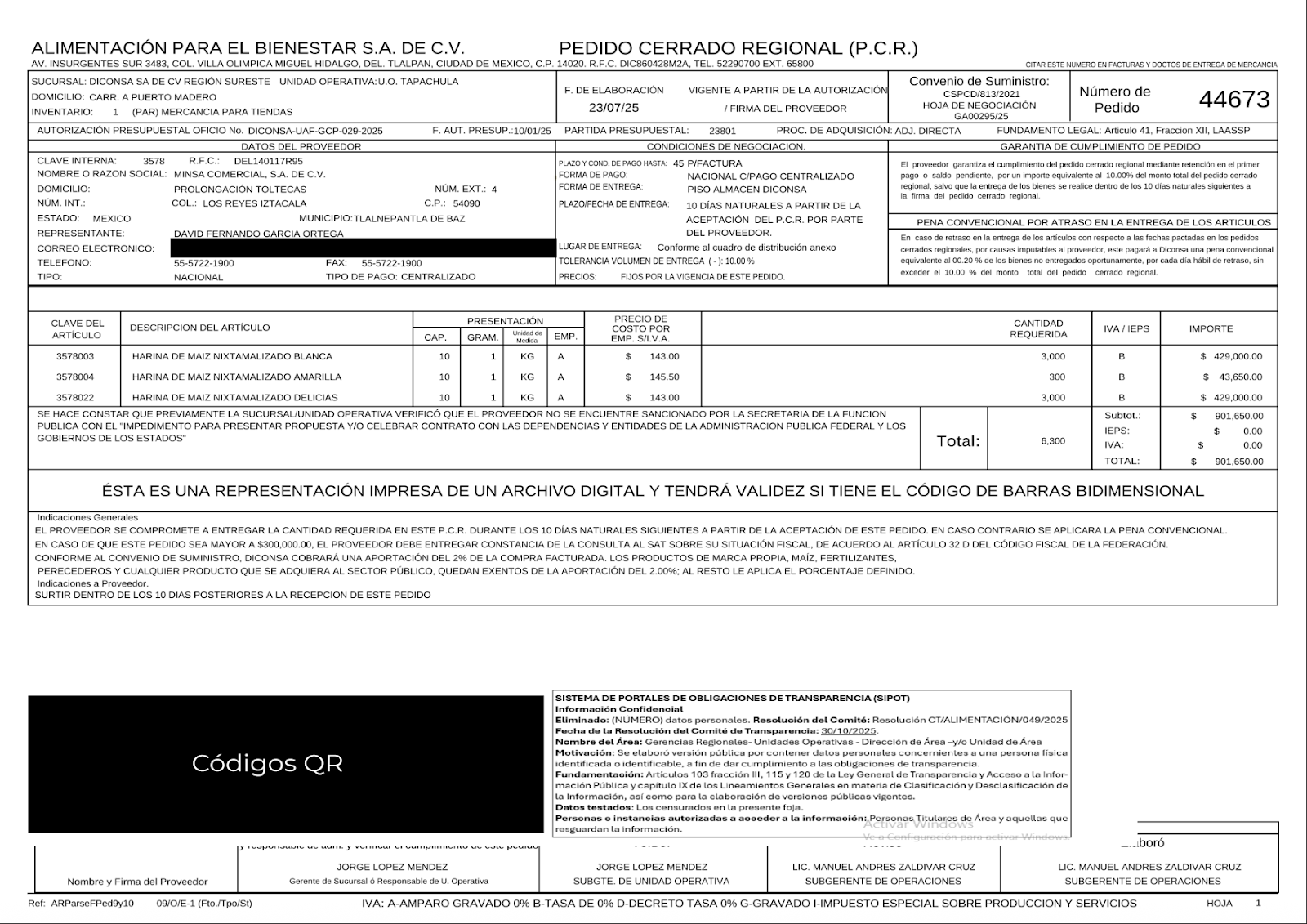 Estos 383 contratos fueron entregados durante el presente 2025, en la administración de Claudia Sheinbaum, para la compra de “bienes para comercializar”, que consiste en comprar harina de maíz nixtamalizado.