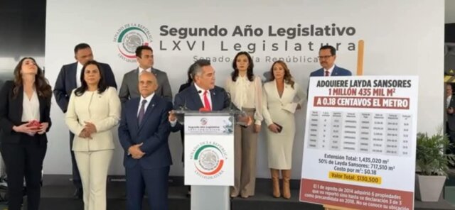 En conferencia en el Senado, el presidente nacional del PRI, Alejandro Moreno Cárdenas mostró públicamente una lista de seis propiedades que compró Layda Sansores el 1 de agosto de 2014 y que no reportó sino hasta su declaración 3 de 3 como precandidata en el 2018.