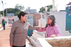 “El mensaje para la ciudadanía es que tengan la certeza de visitar los panteones este fin de semana. Los cementerios están listos, limpios, pintados y con las tradicionales flores de cempasúchil para recibir a las familias en esta conmemoración del Día de Muertos”, expresó la alcaldesa en el recorrido, en el que además saludó a los visitantes.