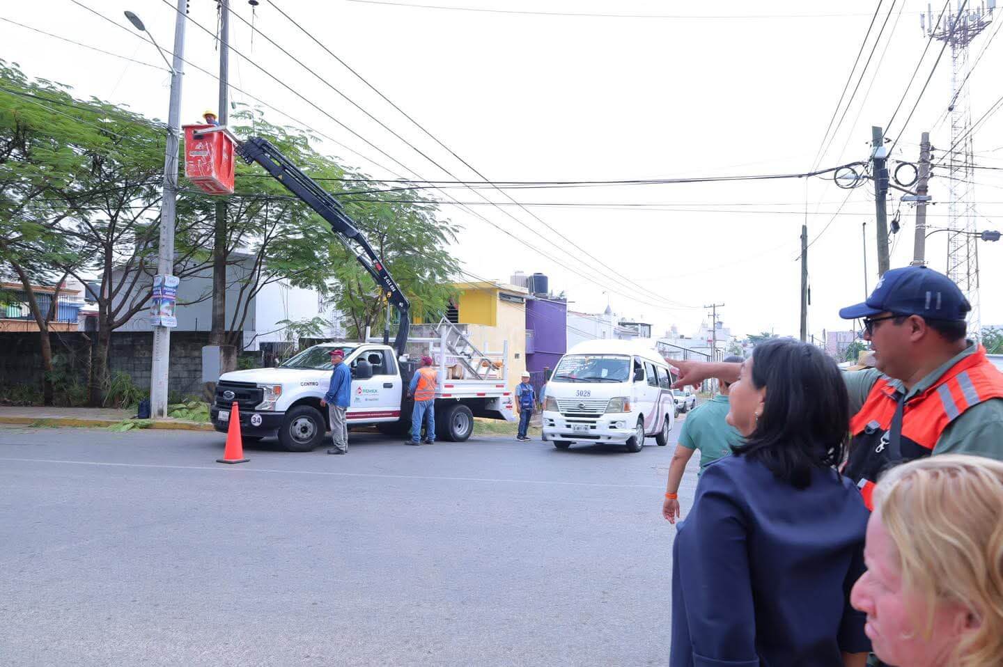 La alcaldesa supervisó personalmente las acciones de bacheo, desmorre de árboles, limpieza integral, atención a fugas de agua y rehabilitación de luminarias que se realizó en distintos puntos de la colonia, así como dialogó directamente con los ciudadanos.