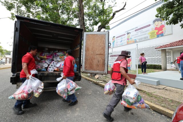 El Gobernador Javier May Rodríguez agradeció a todas las tabasqueñas y tabasqueños que ya se han acercado a los centros de acopio instalados en la ciudad de Villahermosa y los municipios para hacer donativos que se estarán enviando periódicamente a los damnificados veracruzanos.