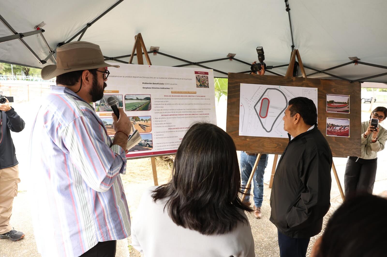 El titular de la SOTOP, Daniel Casasús, dio a conocer que en la obra el Gobierno del Pueblo invierte 23 millones 152 mil 960 pesos, y se estima beneficie a más de 6 mil usuarios. Mencionó que la pista de velocidad cuenta con 7 metros de ancho, y su capa de rodadura tendrá un acabado liso, material sintético a base de resinas acrílicas certificado Durflex SP Roller Professional, marca Vesmaco, que es la propuesta por la Federación Mexicana de Patinaje.